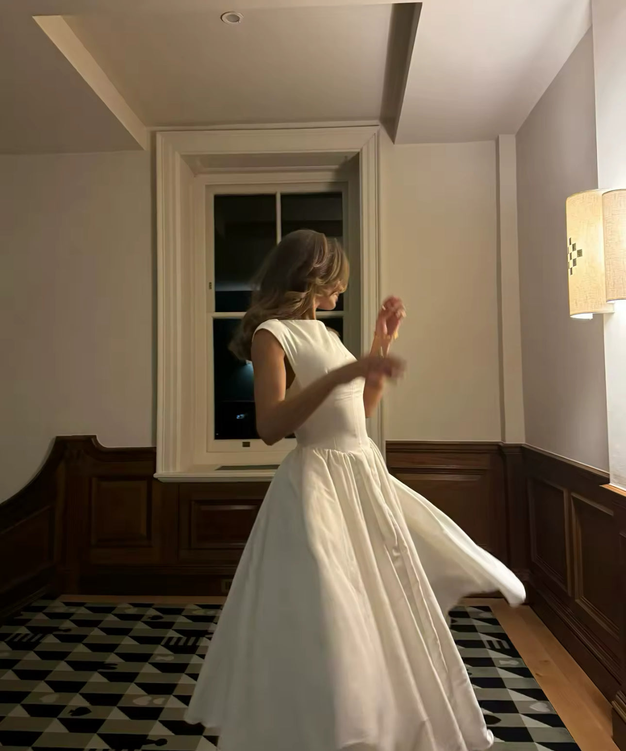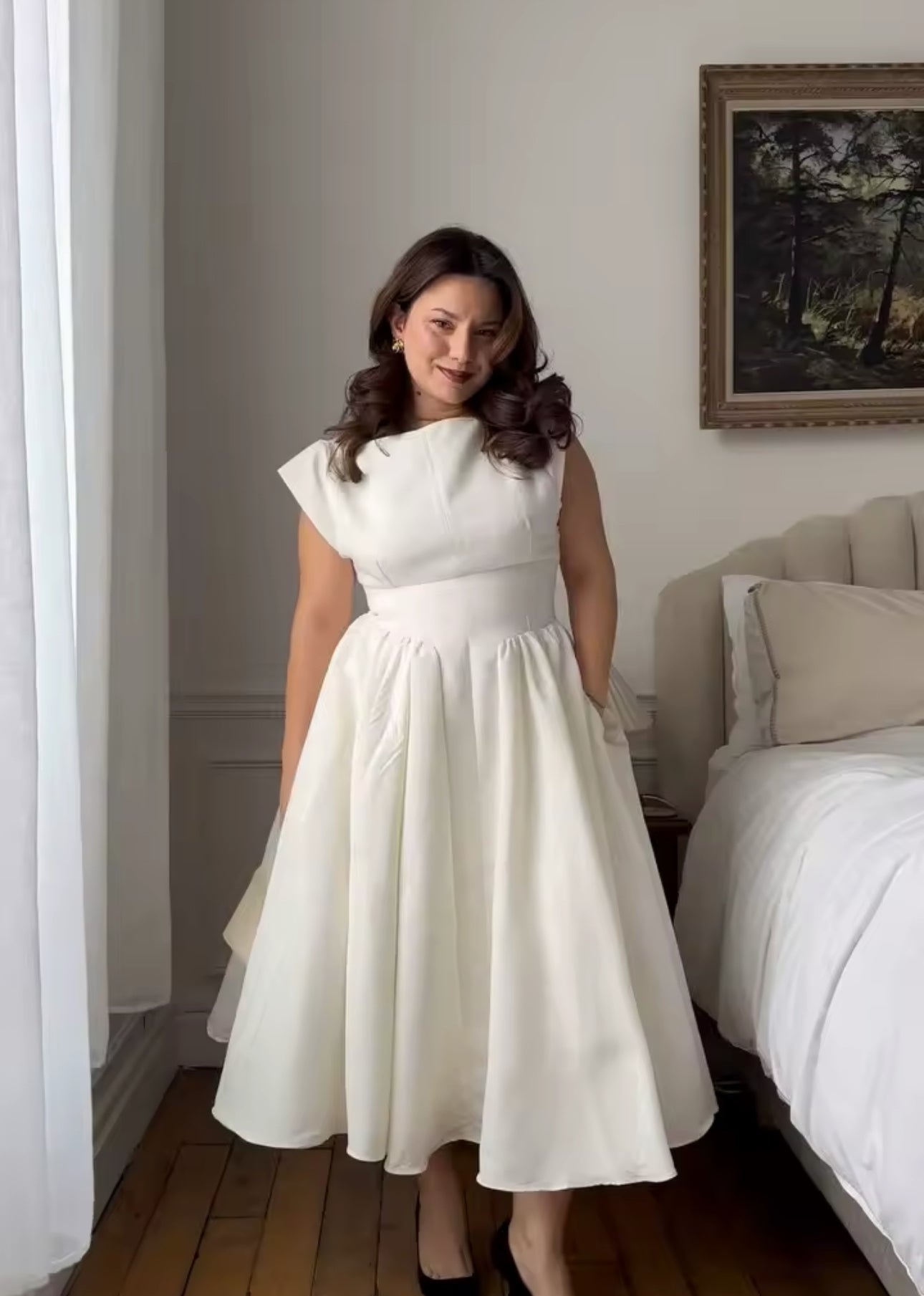 Timeless sophistication with a twist of drama — meet Vivienne. This structured midi dress features a sculpted bodice, voluminous gathered skirt, and an elegant open back framed by a subtle cap sleeve. Whether you’re stepping into a garden party, cocktail soirée, or museum gala, Vivienne delivers refined impact from every angle.