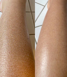 Move out of the water and exfoliate your skin vigorously using upward and downward strokes until you see dead skin cells roll away. Repeat for each desired area on your body. The more pressure you apply, the better the results. (Redness is normal)